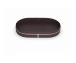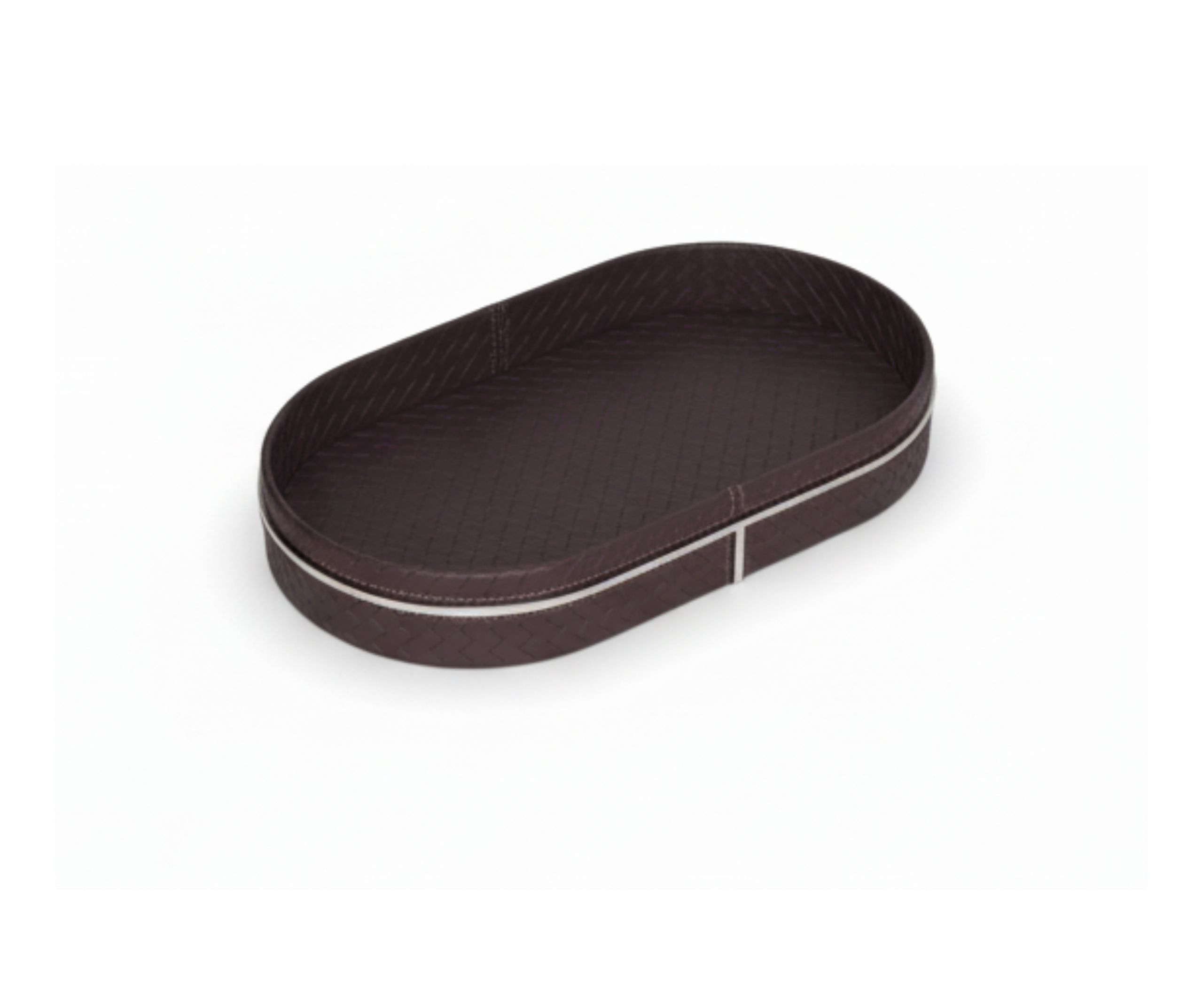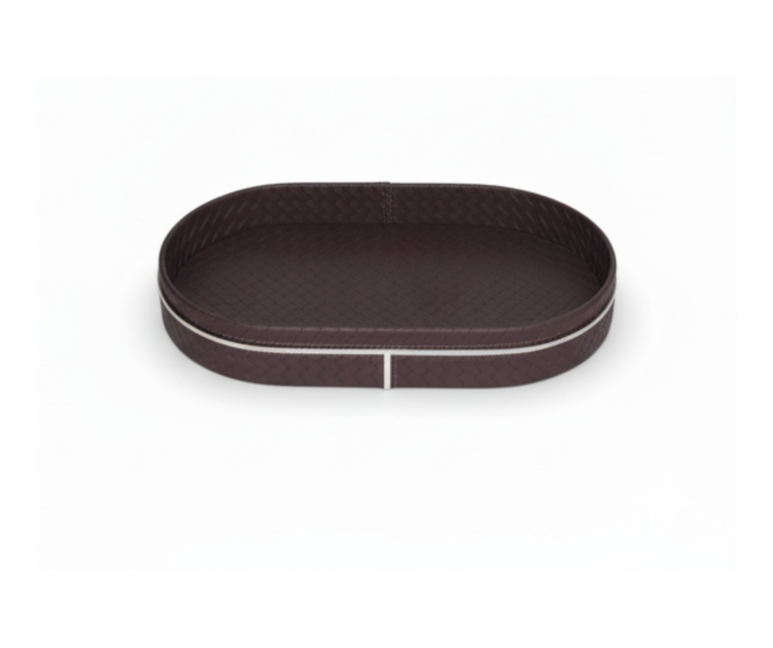 Handcrafted with a rich, woven texture and a striking crimson hue, this oval tray is the perfect accessory for presenting gifts or elevating home decor. Its sophisticated design features a clean white trim, adding a touch of modern luxury to any occasion.