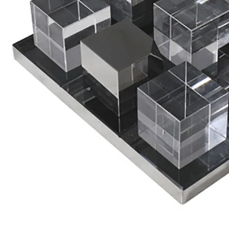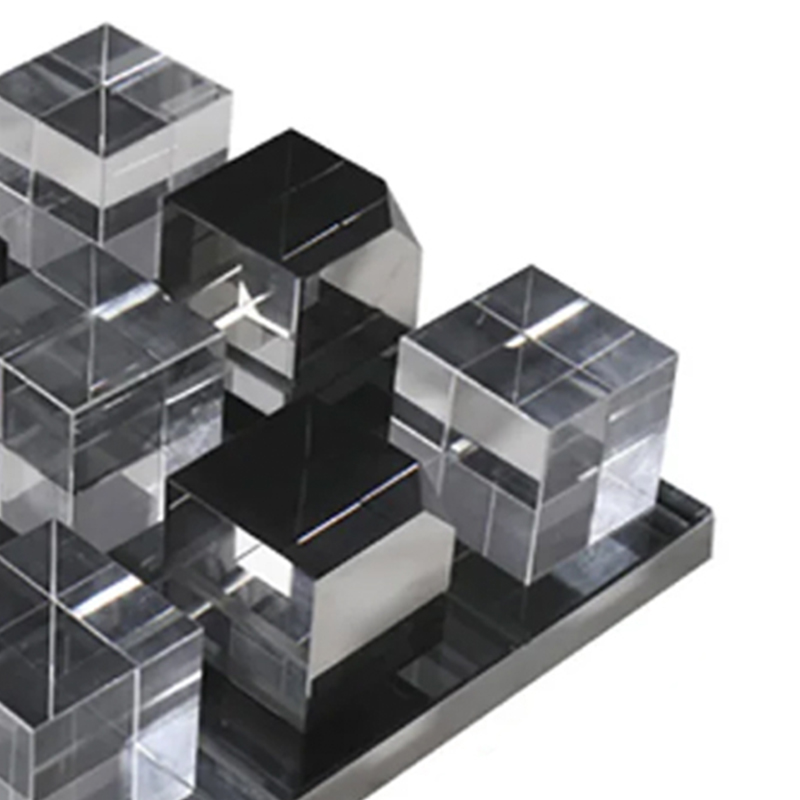 Sophisticated tic-tac-toe game set featuring clear glass X and O pieces on a sleek board. Perfect for adding a modern, stylish touch to your game collection or as an eye-catching decorative piece for your home.