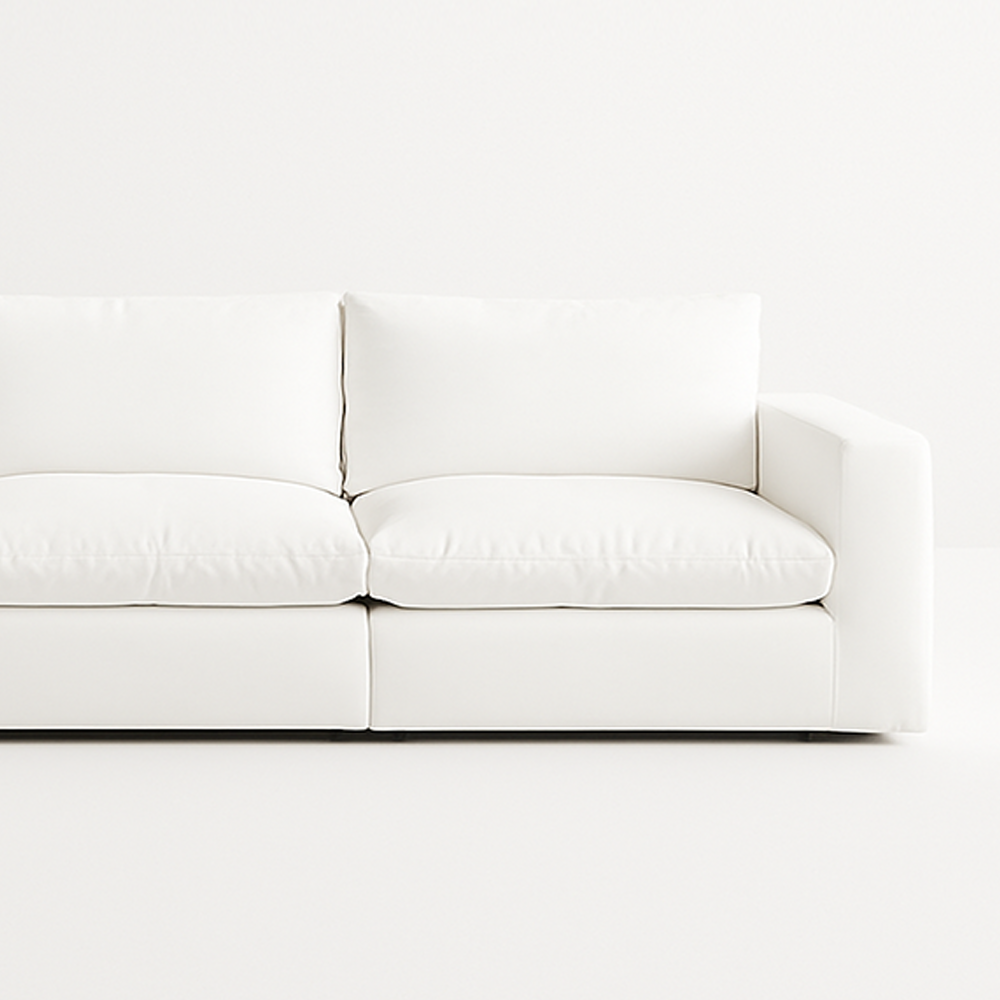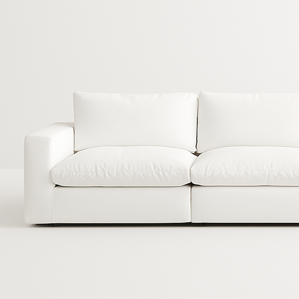 A sleek and modern sofa in pure white, designed for unmatched comfort and elegance. The Marlow Luxe transforms any space into a refined retreat.