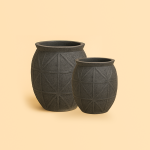 A 2-piece set of textured pots with natural geometric patterns.
