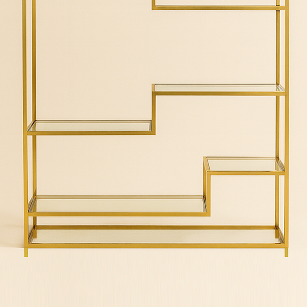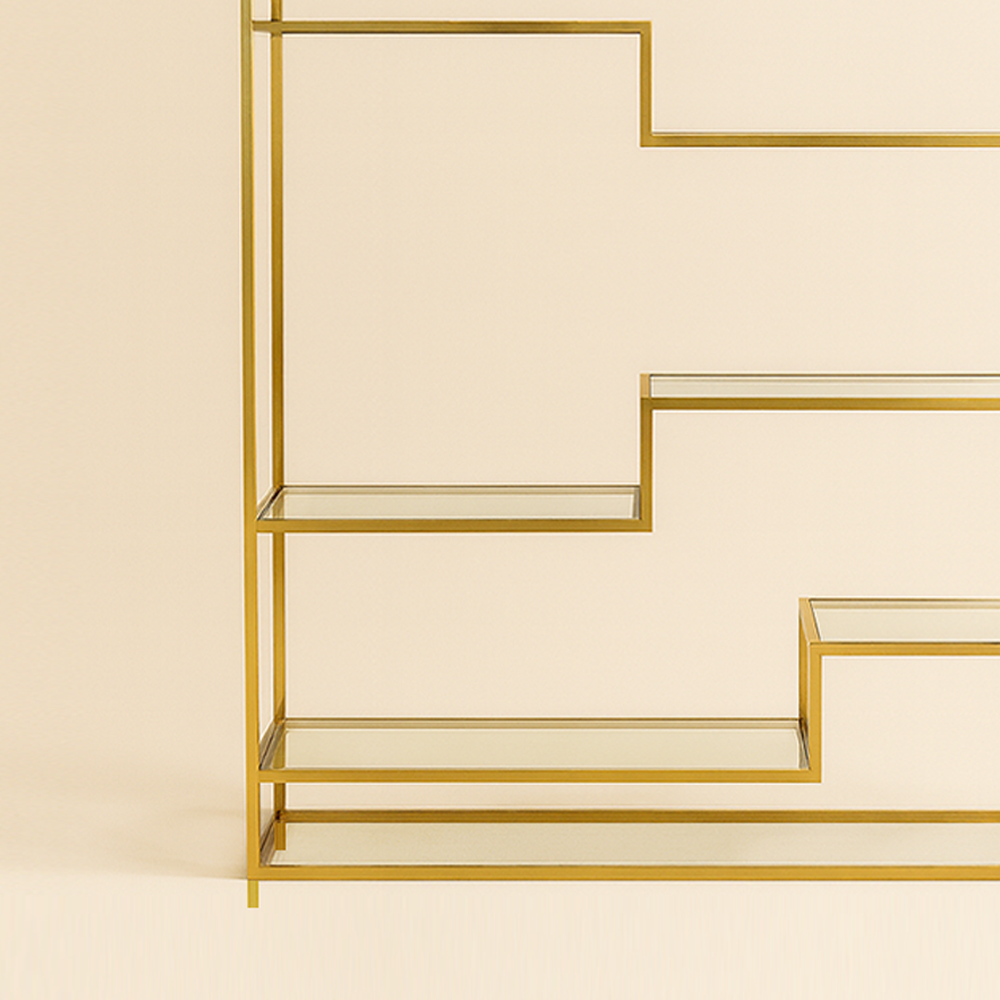 Aurum Maze Shelf a golden geometric display unit for books and décor.