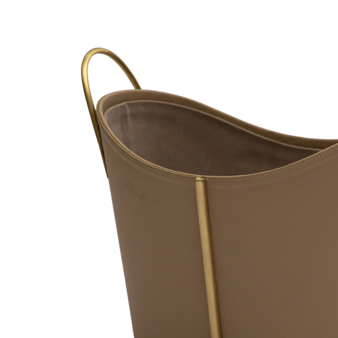 Experience the epitome of sophistication with this meticulously crafted multipurpose basket. Designed with an exquisite blend of leather and metal, it offers both functionality and elegance. Its gracefully contoured shape and luxurious materials make it a standout piece, ideal for enhancing any room.