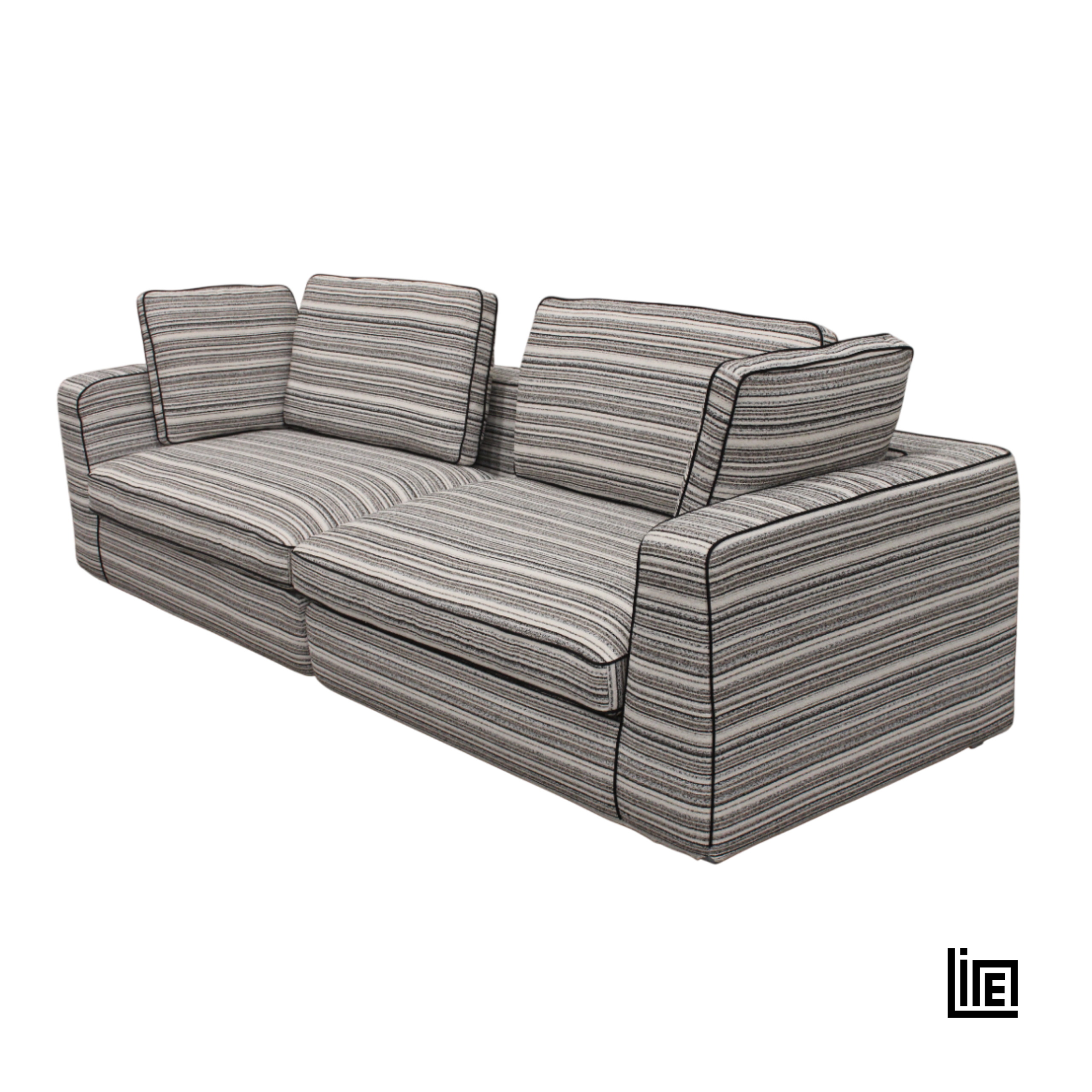 A retro-inspired modular system featuring bold horizontal stripes and a minimalist, armless design. Inspired by 1970s lounge aesthetics, these individual modules can be rearranged to create a custom seating landscape or a clean-lined straight sofa.